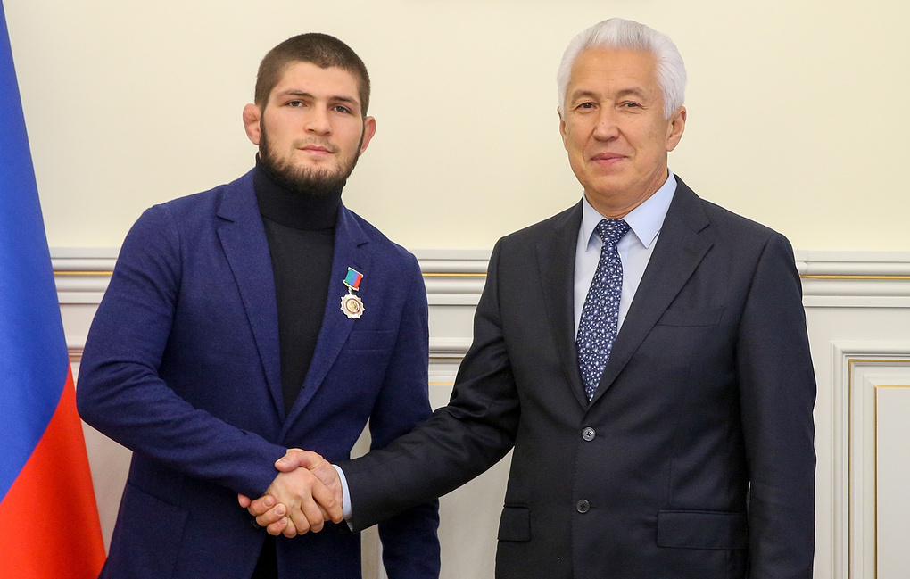 6 ноября 2018 года глава Дагестана Владимир Васильев наградил чемпиона UFC в легом весе Хабиба Нурмагомедова высшей наградой республики - орденом "За заслуги перед Республикой Дагестан". Как сказал глава Республики: "Сейчас самым популярным, наверное, у нас в России становится головной убор — папаха. Спасибо большое." По словам Хабиба, он давно не получал медали. Последнюю медаль он получил в 2011 году за победу на Кубке мира. Кроме чемпиона награду получил также его отец и тренер Абдулманап Нурмагомедов. Ему вручили медаль "За заслуги в области физической культуры и спорта в Республике Дагестан".