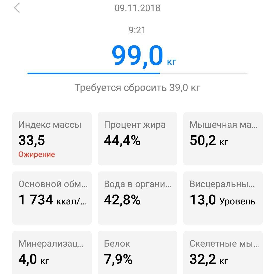 Итак, по результатам недели. С пятницы до пятницы получилось минус 700 грамм. Я немного подрасслабилась после того, как перешла рубеж ниже 100 кг. На этой неделе только три дня уложились в 1700 калорий, два дня был недобор и два дня перебор выше 1700, но дефицит все равно сохранялся. 700 грамм меня более чем устраивают, тем более что на сегодня выпала прекрасная круглая цифра 99 кг: