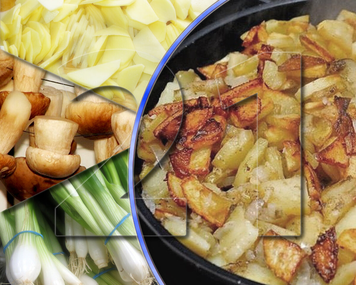 Что на ужин? Картошка с мясом. Жареная? Да. С грибами? Да. Мяса не нужно! Из чего готовим: Подчеркнём ещё раз. Картофель будем жарить, и грибы тоже. Гарнир выйдет с хрустящими ломтиками, коих будет почти половина. Подавайте его горячим к любому мясному или овощному блюду. Поливайте подливой смело, он ещё долго не размякнет в ней. Как готовим: Сушёные грибы залейте водой часа на три, дайте размякнуть, затем в этой же воде и приварите до частичного размягчения. Выньте на доску и нарежьте ломтиками, шириной в половину сантиметра. Другой, практически равноценный способ – залить на десять минут грибы кипятком, затем проверить насколько они размягчились. При необходимости повторить процедуру и нарезать, как описано выше. Со свежими тепличными грибами, а годятся, к слову, и вешенки, хлопот, пожалуй, не меньше. Очистите их, ополосните и тонко нарежьте, на чистом масле пассеруйте до испарения со сковороды сока. Независимо от того, какие грибы и как вы подготовили, дальше процесс не меняется. В