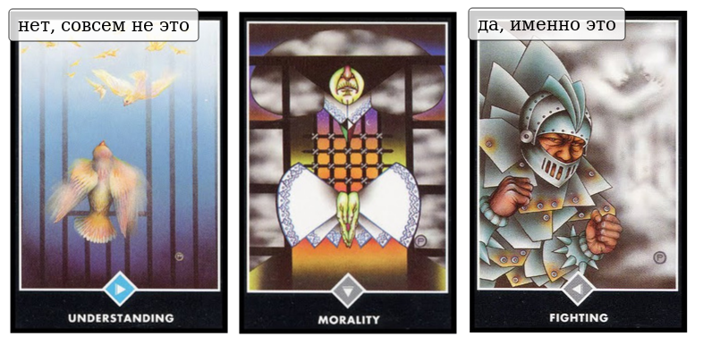 Что нового привносит Королева Воздуха, в сравнении с Рыцарем? Бороться больше не нужно, все внутренние поединки выиграны, в пространстве ума установлена строгая дисциплина (здесь впору вспомнить о раджа-йоге). Вот так, парадоксальным образом, решетки самоограничений открывают небо высших достижений мысли. Какие оттенки добавит сама колода, если ее спросить? Прошу прощения, был не прав. Где-то, оттесненная на задний план, внутренняя борьба все же продолжается. Полного понимания себя, своих ментальных возможностей, оптимальной картины мира здесь еще нет. Что, впрочем, и логично, высшей фигурной картой масти является Король, или Контроль. О нем поговорим послезавтра, после очередного кейса. Готов разложить и для вас. Жду в телеграме, обращайтесь лично или подписывайтесь на канал. Если ссылки не работают, откройте мессенджер и введите ник grey_horse_rus в окне поиска.