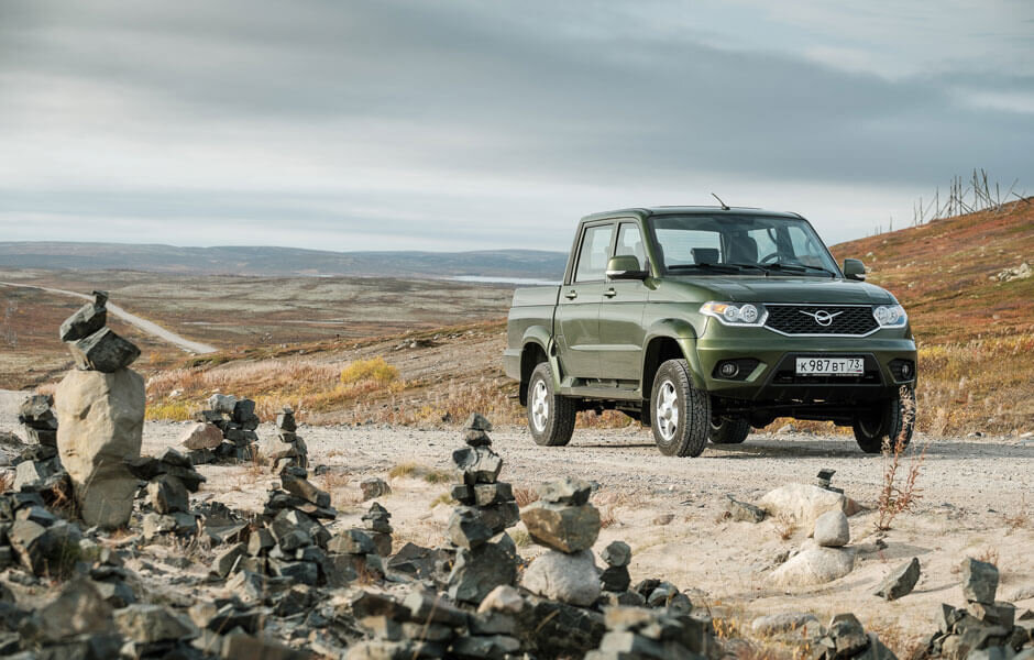 УАЗ Pickup от 764 000 рублей Самым дешевым на сегодня пикапом в России является УАЗ Pickup. Минимальная отпускная цена стартует от 764 000 рублей. В минимальной комплектации под капотом скрывается бензиновый двигатель ЗМЗ 409 который выдает 135 л/с. Также в базе уже включены светодиодные дневные ходовые огни, системы ABS и EBD, электрорегулировка и подогрев наружных зеркал, ГУР и электростеклоподъемники передних и задних дверей. В более дорогих комплектациях доступны колеса на 16 литых дисках, противотуманные фары, мультимедиа и круиз-контроль, кожаный руль с подогревом, климат-контроль и камера заднего вида. Главное преимущество автомобиля это цена, вилка цен начинается от 764 до 1 130 тысяч рублей. За условный миллион рублей ничего нового нельзя купить. Ранее в России продавался прямой конкурент УАЗа Great Wall Wingle 5, но продажи были свернуты в 2017 году. Из минусов можно отнести слабое лакокрасочное покрытие, плохая шумоизоляция, посредственное качество сборки. Foton Tunland
