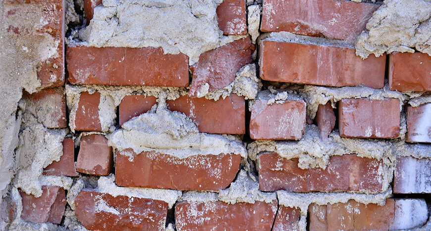 За века придумано много способов и видов кирпичной кладки, но грубые ошибки, допускаемые при строительстве из кирпича, до сих пор не изжиты. Кирпич – один из самых популярных строительных материалов, известный человечеству много столетий. Согласно ГОСТ 503-2012 «кирпич – это керамическое штучное изделие, предназначенное для кладок на строительных растворах». Стандартное определение отражает триаду характерных для кирпичных конструкций проблем: применение некондиционного материала, нарушение технологии кладочных работ, неправильное изготовление и использование при возведении стен цементно-песчаного раствора. Стены этого дома построены из низкокачественного кирпича. Отдельные изделия отличаются по цвету и не соответствуют эталону нормально обожженного глиняного кирпича. Стеновой материал имеет значительные механические повреждения и крупные трещины. Многочисленные сколы превышают установленный ГОСТом предел в 15 мм. Отклонения граней от горизонтали и вертикали видны невооруженным