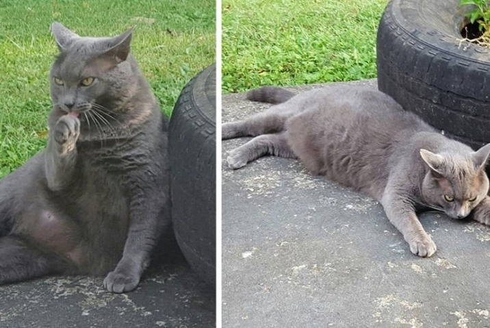 Брошенный хозяевами серый кот несколько лет прожил на улице, пока одна добрая женщина не заслужила его доверие
