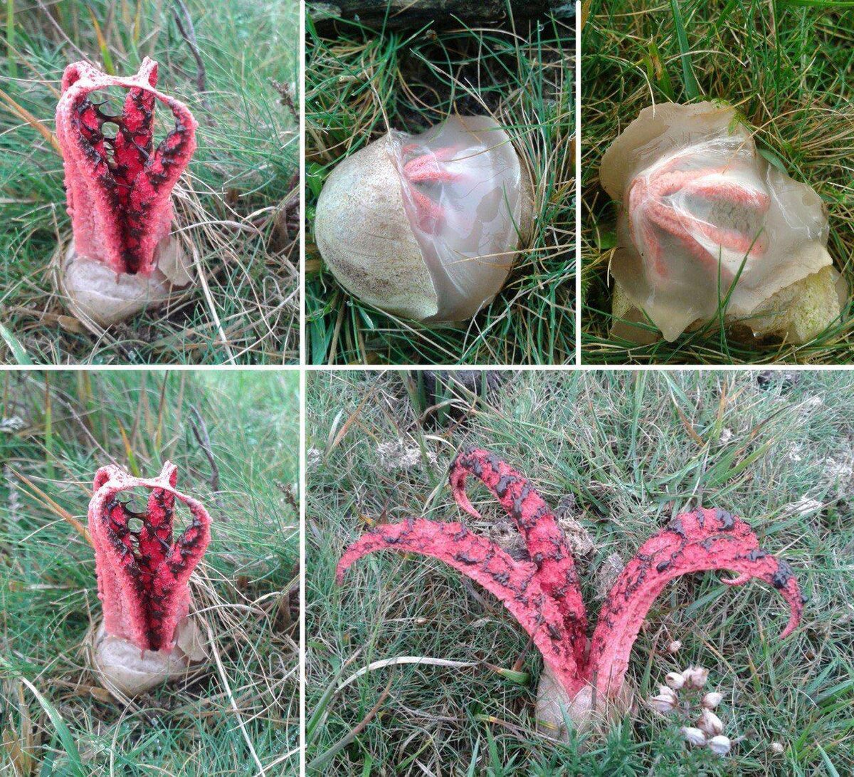 Этот демонический гриб называется Антурус Арчера (Clathrus archeri), он же Пальцы дьявола, и принадлежит он виду грибов рода Решёточник семейства Весёлковых. Родом эти грибы из Австралии и Новой Зеландии, хотя сейчас их можно встретить в Европе, Калифорнии и Британии. Перед "вылуплением" грибы находятся в желеобразных яйцах, внутри которых "пальцы дьявола" собраны вместе. После "вылупления" гриб активно начинает расти вверх, после чего раскрывается, разворачивая свои 5-10-сантиметровые щупальца в разные стороны, и извергая запах гниющей плоти. Темные коричневые пятна на "щупальцах" — это липкая спороносная слизь, называемая глебой, и предназначенная для захвата мух, прилетевших на источаемую ею вонь. Сами грибы не являются плотоядными, поэтому после захвата мух и утопании насекомых в слизи они освобождают их для распространения спор.