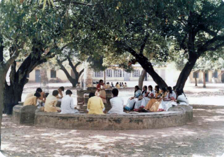 Никогда не устану от Шантиникетана. Никогда. От увековеченной тишины. От раскидистых манго, под которыми, расстелив коврики, познают грамоту индийские дети в желтых рубашонках. Рабиндранату Тагору, когда он был мальчиком, было тягостно учиться в замкнутом пространстве класса, в четырех стенах. И здесь, в Шантиникетане, он основал школу, где дети учатся на свежем воздухе. Шантиникетан ( население 80 тыс. ) – небольшой университетский город в 160 км к северу от Калькутты. Он был основан известным бенгальским поэтом и лауреатом Нобелевской премии Рабиндранатом Тагором. Здесь в 1863 году он построил дом и назвал его "Обителью мира" (Шантиникетан). Постепенно вокруг Рабиндранатх Тагора и его "Обители" стало образовываться поселение учеников, которых объединяла любовь к бенгальской культуре, традициям и духовным практикам. Со временем все это дело развилось в учебный центр и университет. В настоящее время Университет Вишва-Бхарати входит в число крупнейших государственных гуманитарных
