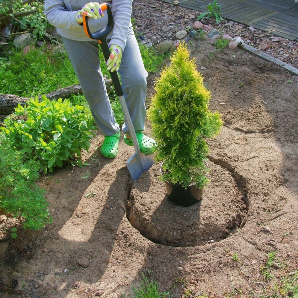 Посадить туи не трудно, но стоит соблюдать несколько советов, чтобы сделать это один раз и хорошо, потому что растения не любят пересадки. Осень - идеальное время для посадки большинства садовых растений декоративных и плодовых деревьев, кустарников, многолетников и луковиц. Погодные условия способствуют быстрой акклиматизации на новом месте. Растения хорошо принимаются перед зимой, а в следующем сезоне рано начинают вегетацию. Посмотрите, как посадить туи в 6 шагов: ПОСАДКА ТУИ: ШАГ 1. Выберите место подальше от крон высоких деревьев, и солнечное, по крайней мере, 6 часов в день. Удалите дерн и все сорняки, чтобы ограничить конкуренцию за воду и питательные вещества. Установите горшок на землю и измерьте ширину отверстия, которая должна быть, по крайней мере, вдвое длиннее диаметра горшка ПОСАДКА ТУИ: ШАГ 2. Выкопать яму глубиной, равной 2-3 высоты горшка. Удалите все корни и камни, чтобы корни туи могли свободно расти. Выберите землю из ямки и подготовьте растению место и почву, соот