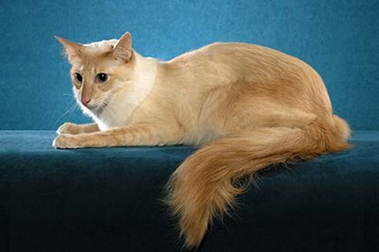 Яванез (Javanese) или яванская кошка – это ориентальная порода, очень изящная и красивая. Голова животного пропорциональная и довольно длинная, морда клинообразная, с четко выраженной линией перехода ото лба к носу. Уши заостренные, большие, на кончиках закругляются, поставлены широко. Глаза имеют миндалевидную форму, они средние, поставлены немного косо. Цвет глаз – зеленый, у белых разновидностей яванезов могут быть голубые или разноцветные глаза. Шея грациозная, тонкая и довольно длинная. Конечности длинные, с овальными лапами, грудная клетка не широкая, но хорошо развитая. Хвост длинный, с плюмажем на конце, доходит до лопаток. Шерсть с тонкой и шелковистой текстурой, без выраженного подшерстка, к корпусу прилегает плотно. Зачастую на плечах, шее, задних конечностях и хвосте она более длинная и струящаяся. Фото: Яванская кошка - воплощение лучших черт восточных пород Поскольку яванская кошка относится к длинношерстным, ее общие контуры тоже кажутся мягкими и округлыми, но при это
