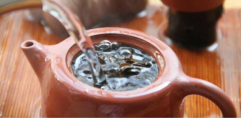 При заваривании по-гуандунски чайник полностью закладывается чаем, обычно это 20-30 грамм чая на одну заварку и заливается кипятком, можно даже крутым, главное не перекипевшим. Время контакта с водой варьируется от степени крепости тех, кто будет пить настой, но мы рекомендуем начинать с моментального слива, и потом потихоньку увеличивать длительность заваривания.