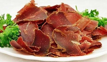 Прекрасный перекус и еда в дорогу. Приведенный рецепт рассказывает о приготовлении мясных чипсов из говядины, но очень вкусные чипсы получаются также из оленины (северный олень) и другой дичи. Тем более, что охотничий сезон продолжается. Если вам понравится рецепт и вы хотите поддержать проект – пожалуйста, поставьте лайк, тогда рецепты и статьи будут чаще включать в ленту. Готовятся мясные чипсы легко и просто, а степень остроты и приправы можно подобрать в соответствии со своими вкусами. Как приготовить домашние мясные чипсы из куриной грудки можно посмотреть здесь Ингредиенты: 1кг. говядины (мякоть без костей) Острый соус (чили, табаско) Порядок действий: 1. Максимально срезать с мяса жир, завернуть его в пищевую пленку или марлю и убрать в морозилку на 1 час. 2. Подмороженное мясо нарезать ломтиками толщиной 5 мм, затем небольшими кусочками. 3. Выложить мясо в миску, залить выбранным острым соусом и тщательно перемешать, чтобы все кусочки равномерно пропитались. Количество