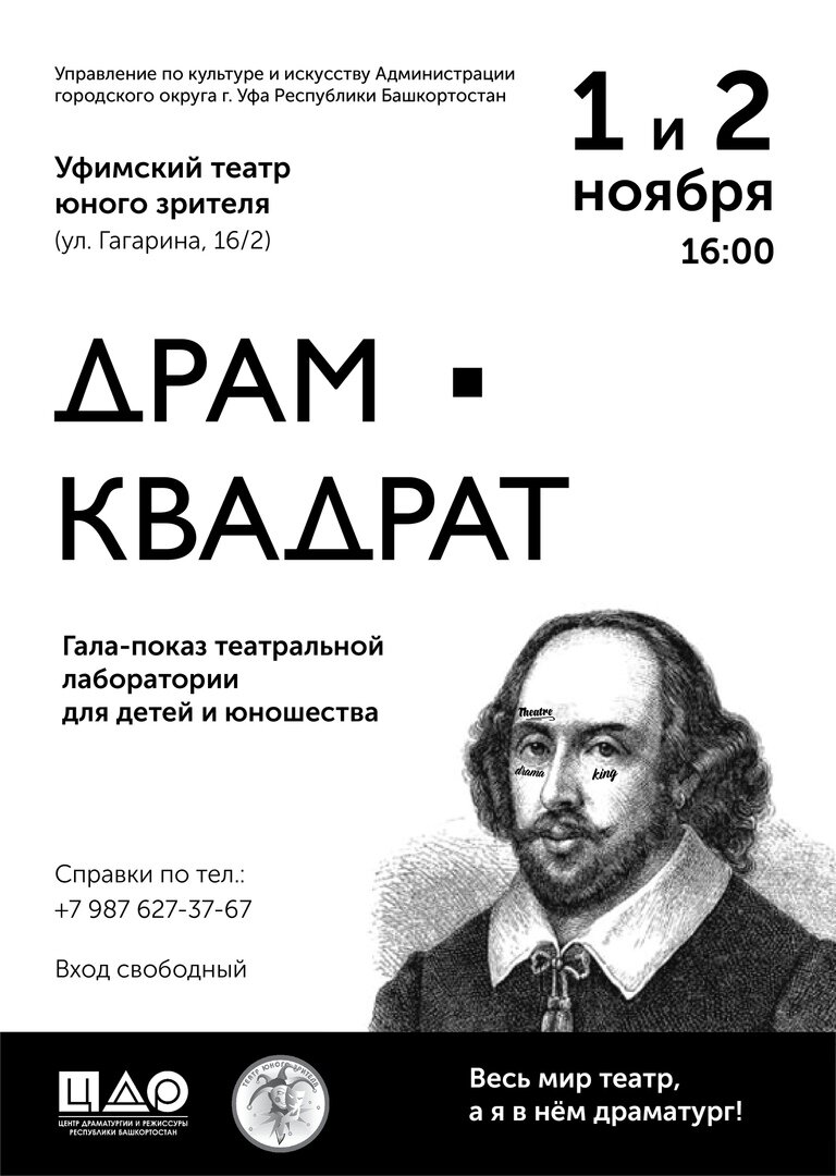 В последнее время в Уфе наблюдается резкий подъем интереса к драматургии. Проводятся различные конкурсы, читки и смотры: это и «Ремарка», и «Мастерская сказок», и даже открытие отделения драматургии в Лаборатории кино, театра и ТВ «MediaHouse». И вот, уже второй год подряд проект «ДрамКвадратик» проводит показ пьес, написанных подростками. Показ состоялся в Уфимском ТЮЗе (ул. Гагарина, 16/2). «ДрамКвадратик» – это новый проект Центра драматургии и режиссуры РБ, объединение творческих усилий подростков и профессионалов театрального дела. В этот раз пьес было больше (целых 14), чем в прошлом году, да и режиссеры эскизов не захотели вписываться во временные рамки, и организаторы решили провести аж целых два дня показов. Эскизы к пьесам молодых драматургов были созданы усилиями Уфимского ТЮЗа, The Театра и студентов Уфимского государственного института искусств им. З. Исмагилова. В первый день были представлены пьесы Айсулпан Амировой, Александра Тур-кина, Анастасии Равчеевой, Елизаветы