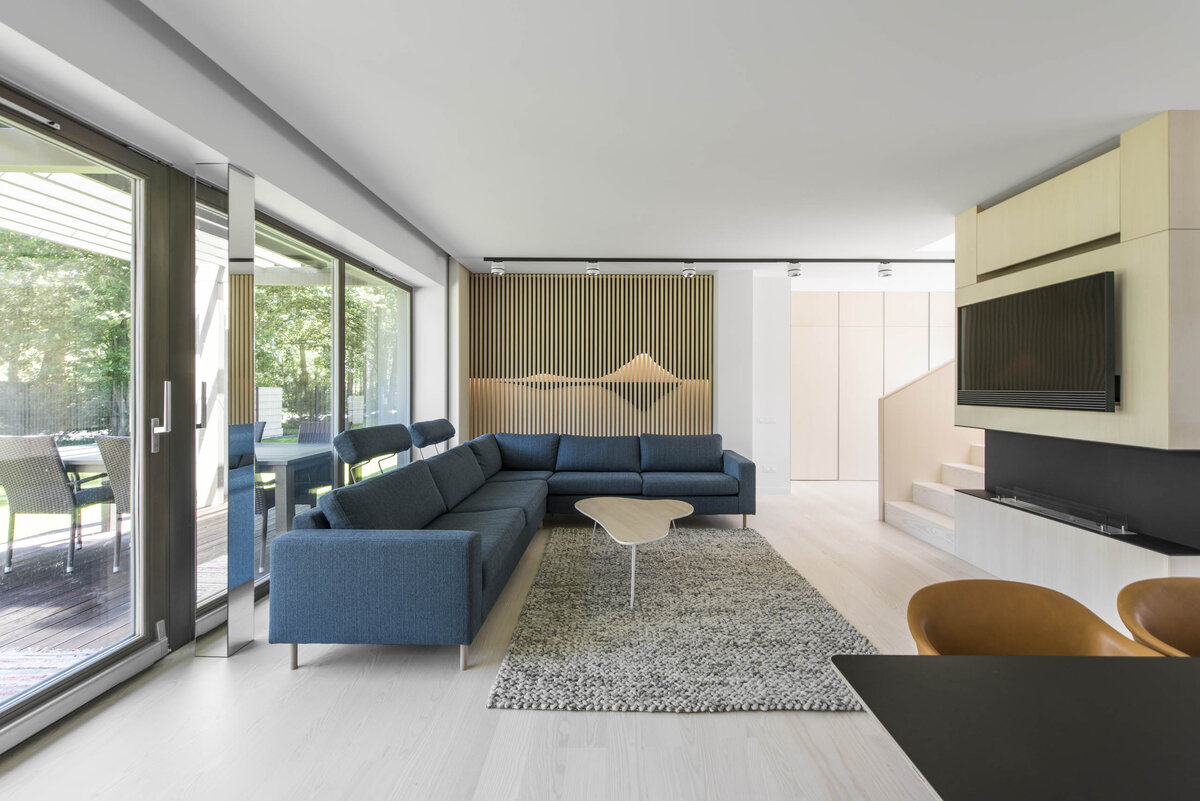 Проект Koltur – загородный дом на берегу Балтийского моря в Паланге, Литва реализованный архитекторами YCL studio. Интерьер дома площадью 140 квадратных метров был вдохновлен красотой острова Колтур. Четыре элемента природы были выбраны в качестве символом для интерьера – вода, песок, деревья и облака. Солнечная и теплая фактура ясеня в интерьере создает ощущение прогулки по песчаным дюнам, в поисках гостеприимного оазиса для отдыха. Источник
