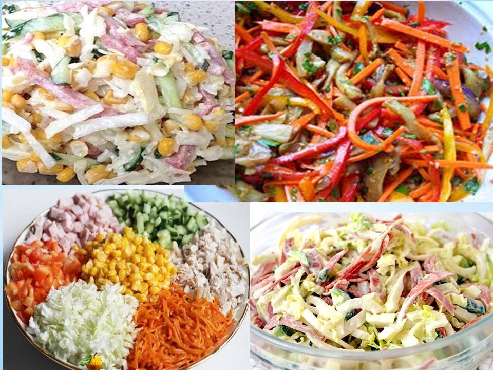 Время летит незаметно. Не успеем оглянуться, а на пороге самый долгожданный праздник, Новый год. Чтобы жёлтая земляная свинка не застала нас врасплох, уже сейчас пора заняться подготовкой к её встрече. В первую очередь подумаем о праздничном столе. Хозяйка года не прихотлива в еде, но в то же время она любит, чтобы все блюда были натуральными и красиво оформленными. Что же приготовить к празднику? Уж конечно, не свинину! Предлагаем простые рецепты праздничных салатов, которые порадуют гостей. Салат по-французски Салат по-французски – быстрый и лёгкий в приготовлении, а также вкусный и, что немаловажно, малокалорийный салат. Для его приготовления понадобится: 1. Яблоки среднего размера – 2 шт. 2. Сырые морковки – 2 шт. 3. 4 варёных яйца. 4. Сыр твёрдых сортов 200 г. 5. 1 луковица (можно не брать). 6. Майонез. Готовим салат. Лук нарезать маленькими кубиками и залить кипятком на 5 минут. Очищенную морковь натереть на меленькой тёрке, яйца, очищенные яблоки и сыр – на крупной. Все подготов