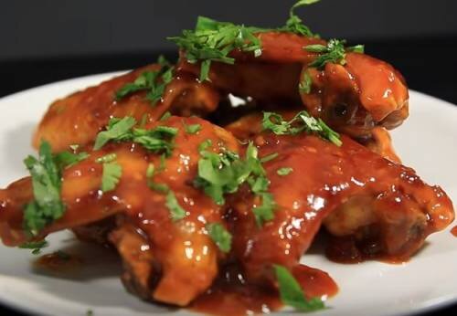 500 гр. куриных крыльев; 100 мл. апельсинового сока; Соль и перец; 100 гр. сливочного масла; 1 ст. ложка коричневого сахара; 1 ч. ложка острого перца; Цедра лимона или апельсина; 2-3 зубчика чеснока; 150 гр. томатного кетчупа; Кинза для подачи. Приготовление: 1. Подготовленные крылья посолите и поперчите и после тщательного перемешивания добавьте к ним апельсиновый сок. Маринуем в этом соусе 30 минут.