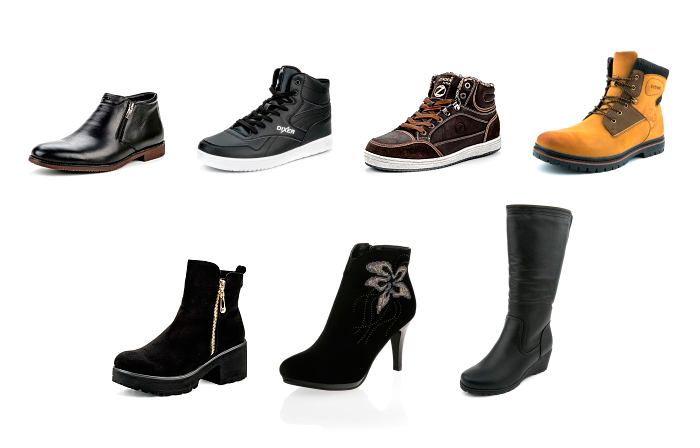 C) Большой выбор мужской и женской обуви