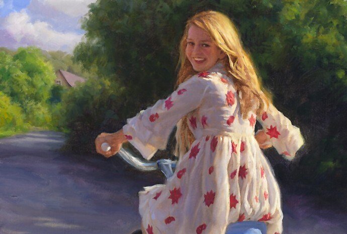 Волосы у моей Миланы распущены по плечам, велосипед и пляжная сумка лежат у ног, а ноги выделывают странные па…