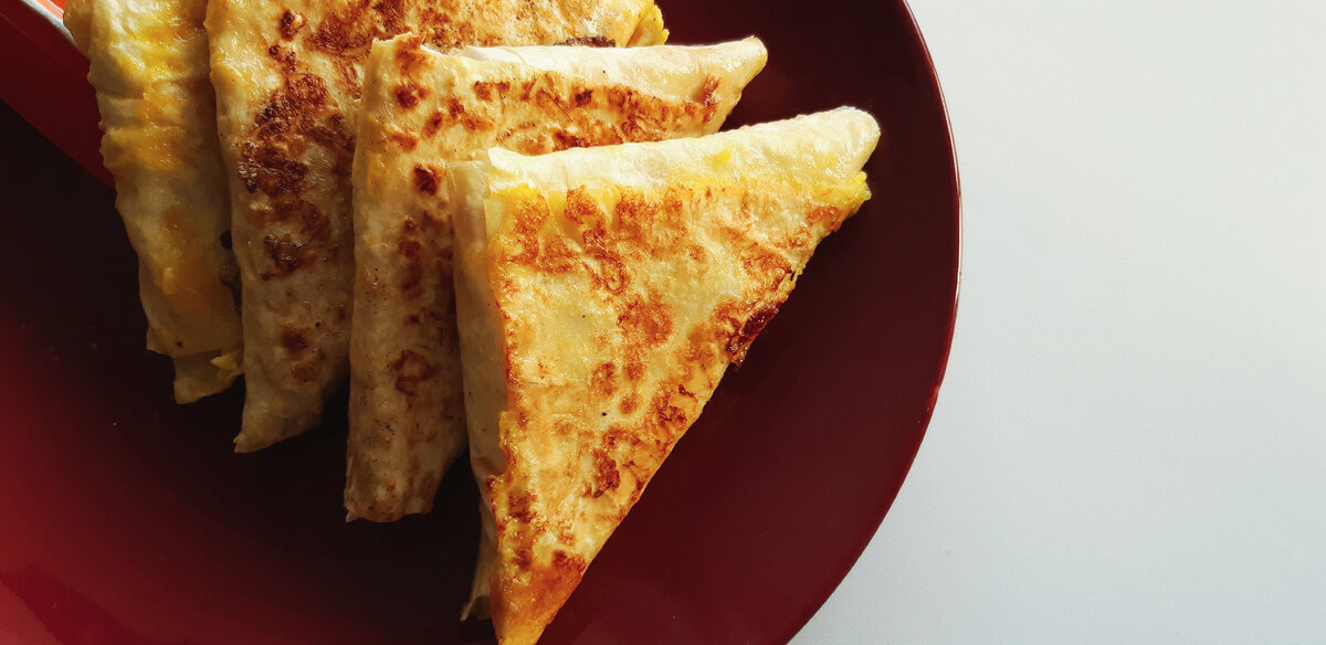 Ингредиенты: Творог - 150 гр. Сыр для хачапури или моцарелла - 100 гр. Лаваш - 150 гр. Яйцо - 1 шт. Молоко или сливки - 30 гр. Разминаем творог вилкой, добавляем тертый сыр и хорошо перемешиваем. Яйцо с молоком взбиваем венчиком. Лаваш разрезаем на полоски. На край лаваша выложить начинку и свернуть в треугольник. Обмакнуть каждый треугольник в яйце с молоком и обжарить с двух сторон до золотистой корочки. Приятного Вам аппетита❣