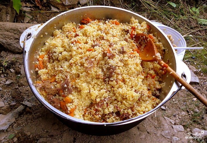Секрет неповторимого вкуса рассыпчатого и душистого плова заключается в правильной технологии его приготовления. Рис тщательно промывают 5-7 раз, не перемешивают с остальными ингредиентами до тех пор, пока плов не будет полностью готов. Кипяток вливают тонкой струйкой. Ингредиенты: тушенка – 400 гр рис – 1 стакан лук – 1 шт морковь – 2 шт масло растительное приправа для плова, специи, соль Способ приготовления: Лук и морковь почистить. Лук мелко порезать, а морковь натереть на терке. Обжарить в казане с растительным маслом лук с морковью до золотистого цвета. Банку тушеного мяса открыть. Снять верхний слой жира, переложить его в казан. Довести до кипения. Тушить 5 минут. Сверху выложить промытый рис. Залить горячей водой из чайника, она должна покрывать рис на 3 см. Довести до кипения, накрыть крышкой и готовить 20 минут на среднем огне. Затем всё аккуратно перемешать, снять с огня и дать постоять 5 минут. ПРИЯТНОГО АППЕТИТА! Если Вам п