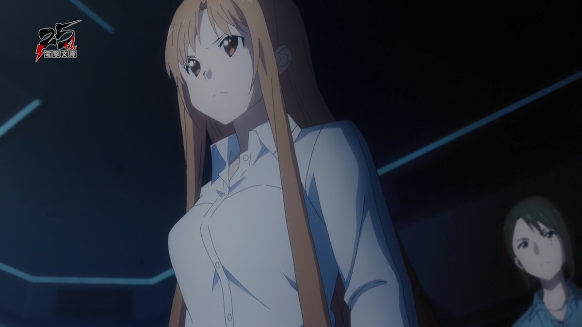 Всем привет. Ещё одна серия, события которой затрагивают только реальный мир. Наконец рассказали кучу всего, интересующего нас последние несколько эпизодов, тем не менее некоторые моменты так и не освятили. ПОсле разговоров на тему нелепых поступков Асуны в статье на прошлую серию череда не очень понятных действий героев продолжается, о которых мы, конечно же, поговорим подробнее ниже. Кричащие девушки обладают чудотворнейшей силой. НЕмного скорчив гримасу, раскрыв свой маленький ротик, Асуна в буквальном смысле заставила рассказать ей всё о секретном проекте. Не буду на этом долго останавливаться, об этой маленькой нелогичности уже было замолвлено несколько слов. Очкарик, даже когда вроде как выкладывал всё как есть, не вызывает ни малейшего доверия. К чему бы ему говорить всю правду? Почему бы ему не опустить некоторые спорные моменты и сложности, которые могут возникнуть в ходе проведения эксперимента? Тем не менее ничего против тоже не скажешь. Ведь сейчас жизнь Кирито-куна полн