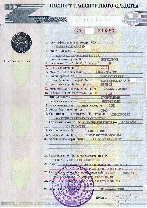 Открываем ПТС и смотрим, вспоминая пункт 4 из моей предыдущей записи: