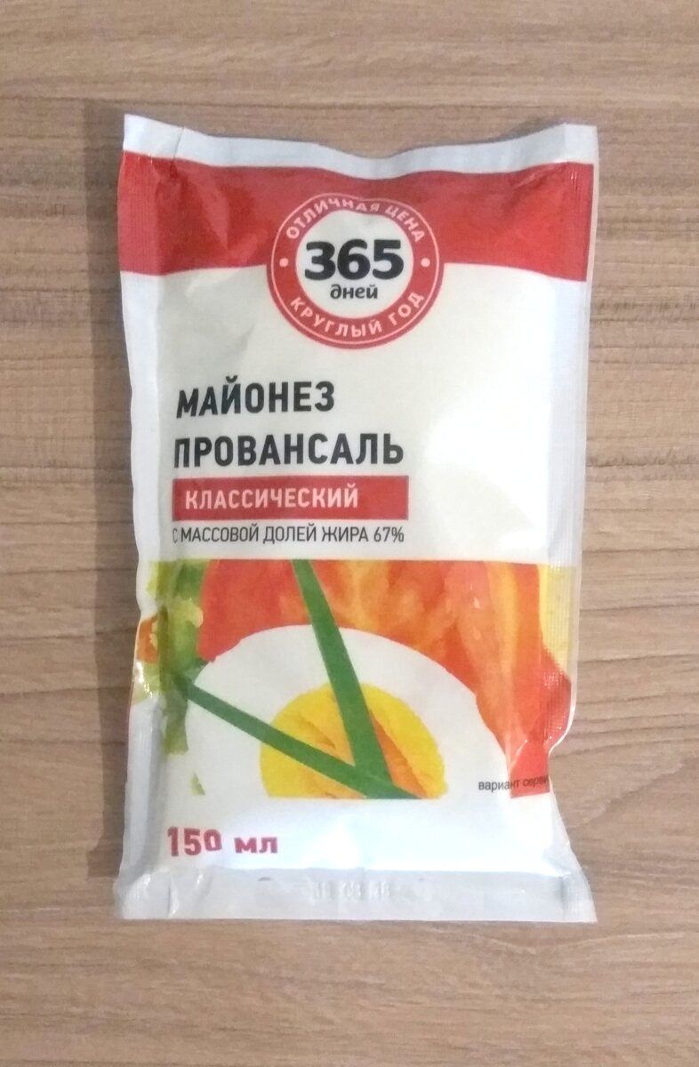 Не хотелось брать на обзор этот майонез как то, но что ради своей небольшой, но верной аудитории не сделаешь) В общем, взял и попробовал. Сейчас расскажу, из чего он состоит, как на вкус и стоит ли его покупать в целях экономии. Состав Итак, мы имеем классический майонез провансаль с массовой долей жира 67%. Сделан по ГОСТу. В составе: подсолнечное масло, вода, соль, яичный желток, регуляторы кислотности (пока все отлично), дальше, увы, пошли стабилизаторы, консерванты, подсластители (сахарин, Е952), Е385, краситель.. В общем, может быть это и ГОСТ, но явно не самый лучший мягко говоря.. Оценка: 1,5/5. Вкус Зря я так не хотел его пробовать. По вкусу почти ничем не отличается от обычного нормального майонеза, разве что консистенция немного валкая, возможно не до конца однородная, но есть вполне можно. Оценка: 3,5/5. Цена 17 рублей без всяких скидок и акций. Да, объем продукта небольшой - всего 150 мл, но зато не испортится, если его конечно кто-нибудь будет есть. Оценка: 4/5. Вердикт М