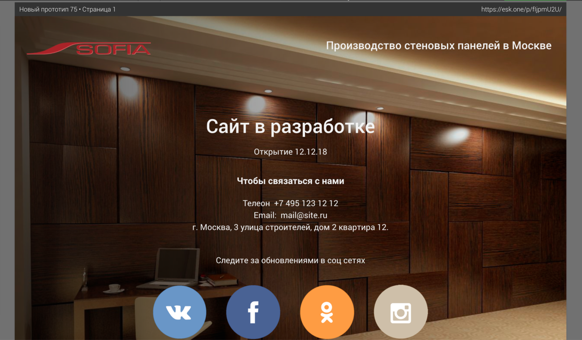 Пошаговая инструкция как сделать заглушку для сайта самостоятельно. без софта, шаблонов, css, программирования и выпиливания кода из конструкторов сайта. Этот метод пригодится, когда на дизайн и верстку дополнительной страницы нет ни желания, ни средств, ни времени. Заглушка для сайта - Это страница которая информирует о запуске проекта. Предоставляет посетителям информацию о том что проект недоступен по какой-то причине. Если вы заботитесь о пользователях, нужно им сообщить о скором открытии или возобновлении работы сайта. Что размесить на заглушке Инструкция Чтобы сделать страницу-заглушку нам понадобится сервис для проектирования сайтов esk.one 1 - Входим в esk.one от соц. сети или регистрируемся, кому как удобнее. Быстрее вход от соц. сети. Заходим в личный кабинет и создаем новый проект с названием «Прототип сайта». Открываем его для редактирования. 2 - Добавляем фон. Включаем заливку цветом и задаём общую прозрачность заливки, чтобы тест лучше читался. Можно включить градиент