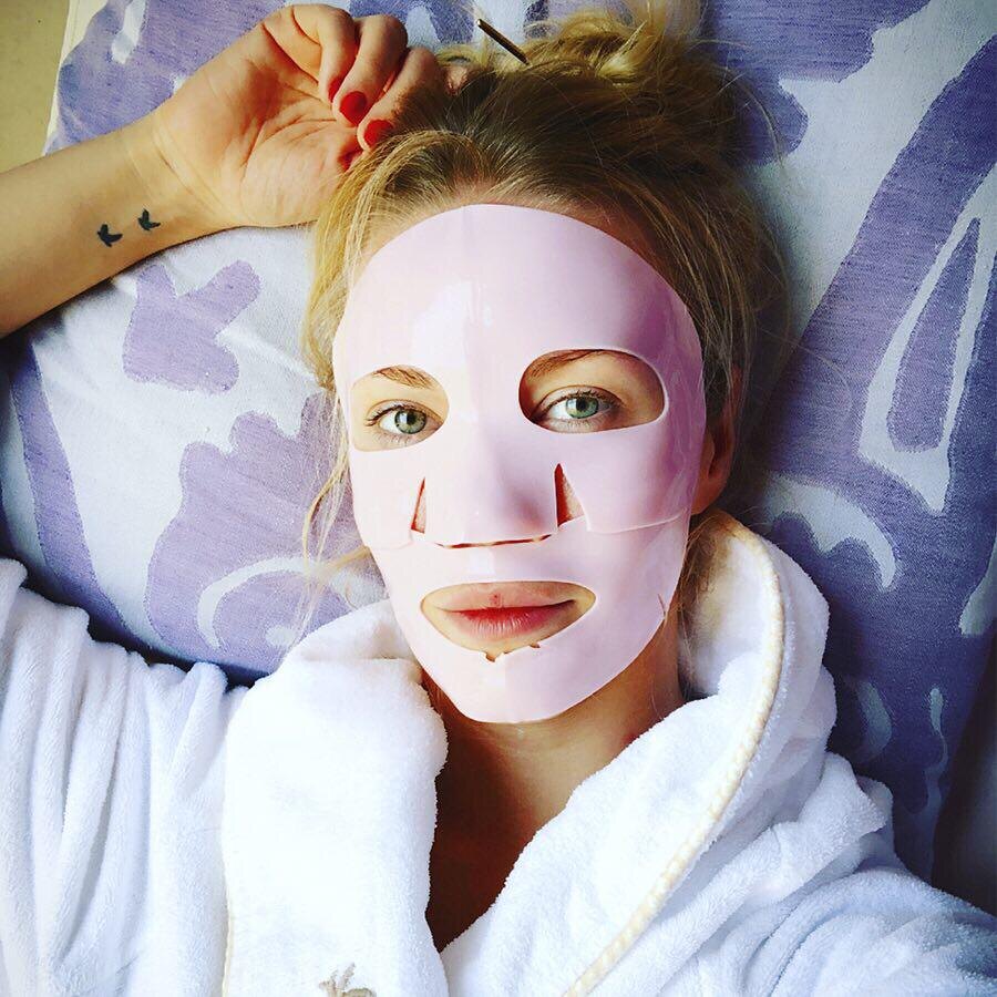 ЕЛЕНА КРЫГИНА: ⠀“Это маска-сыворотка (сама она в маленькой круглой коробочке, как джем в самолете) она представляет собой густой гелевый полупрозрачный концентрат, обогащенный комплексом экстрактов малины, черники, клубники, а также насыщен гиалуроновойй кислотой и экстрактом морских водослей. Маска глубоко увлажняет кожу и самое главное подтягивает ее, ощутимо повышаая упругость. В дополнение к коробочке с концентратом идет плотное гидрогелевое покрытие нежно-розового цвета. Само по себе оно лишь выполняет функцию этакого тяжёлого защитного слоя, препятствуя испарению компонентов активного концентрата с поверхности кожи, а также создаёт немного вдавливающее действие за счет тяжести своего покрытия. Поэтому маски из этой серии считаются альгинатными. Покрытие плотно прилегает к коже и вообще не сползает. Это очень удобно, потому что вы можете спокойно заниматься своими делами, не отвлекаясь на сползающую маску. Я рекомендую делать эту маску по утрам нежели вечером. Она дает мгновенный