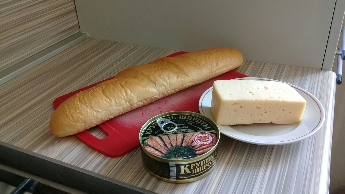 Время приготовления 5 минут. Ингредиенты: Батон бутербродный Шпроты Сыр (твердых сортов) РЕЦЕПТ 1. Батон нарезать наискосок. Положить сверху рыбку. 2. Посыпать сыром (натертым на мелкой терке). 3. Поставить в микроволновую печь на 1 минуту. Приятного аппетита.
