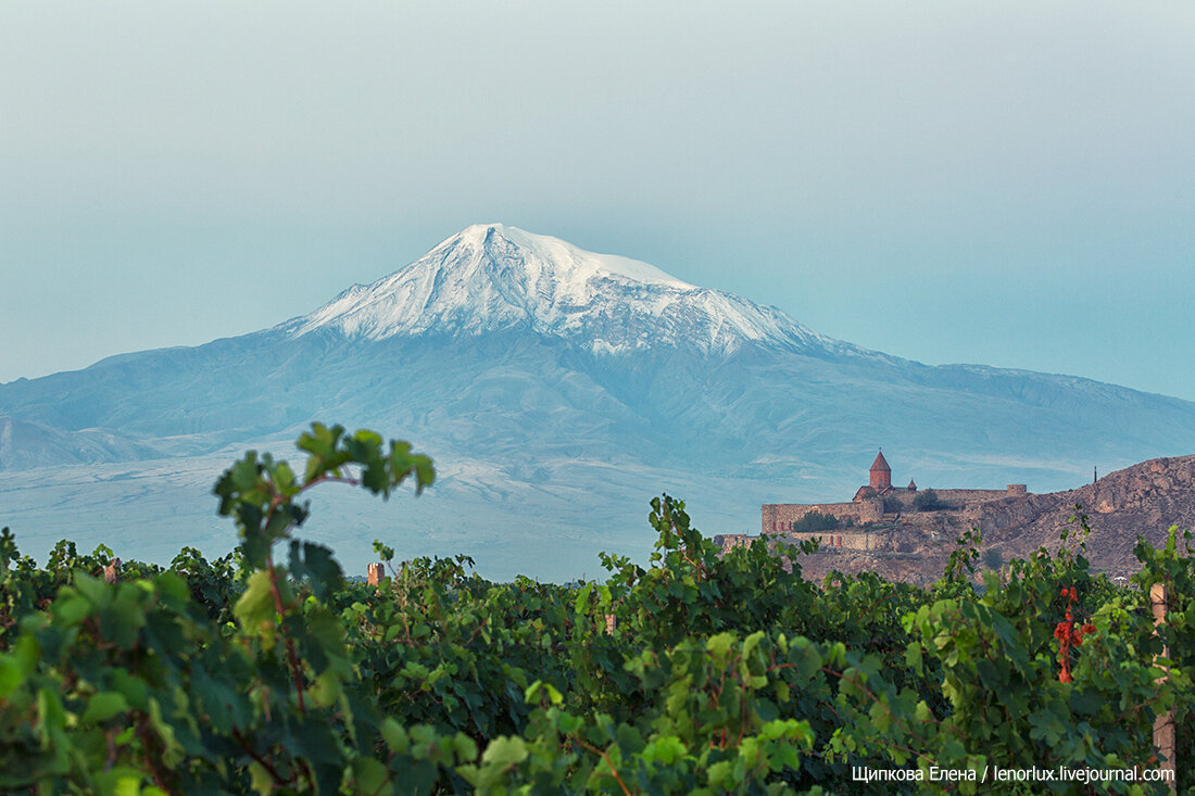 Самым ярким впечатлением от зимней поездки в Армению стал монастырь Хор-Вирап, на фоне величественного Арарата. Помню, как мы бегали по пояс в снегу на непривычном для теплой Армении 25-градусном морозе по этим вот виноградникам и не могли заставить себя уйти погреться в машину, потому что невозможно было оторваться от такого зрелища.