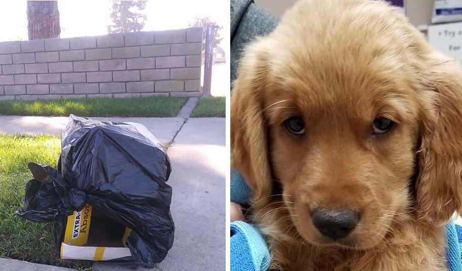 Супружеская пара нашла на обочине дороги коробку в мусорном пакете, внутри которой сидел щенок золотистого ретривера