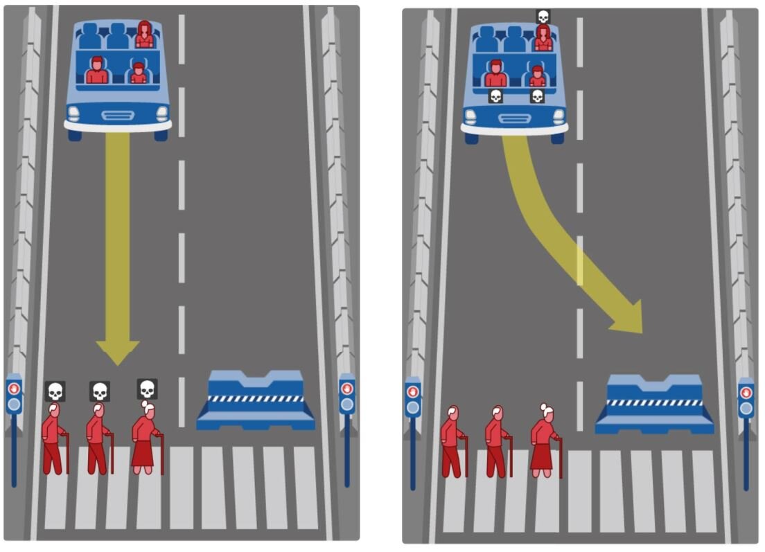 — тем, кого больше (например, пятерым пешеходам) или меньше (водитель и его жена с маленьким ребенком в автокресле)?