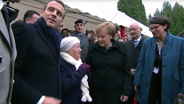 МОСКВА, 12 ноя — РИА Новости. Пожилая француженка, общавшаяся с мировыми лидерами на торжествах, посвященных столетию окончания Первой мировой войны, приняла канцлера Германии Ангелу Меркель за супругу президента Франции Брижит Макрон. Как видно на видеозаписи встречи, опубликованной телеканалом BFMTV, активнее всех проявила себя пожилая дама, которая поздоровалась с Макроном, эмоционально назвав рукопожатие с президентом республики "фантастикой". Затем женщина обратилась к стоящей рядом Меркель. "Это вы мадам Макрон?", — спросила она. "Канцлер Германии", — ответила Меркель по-немецки. Хотя Меркель назвалась еще несколько раз, ее собеседница, по-видимому, осталась в уверенности, что общается с первой леди Франции. По данным телеканала, француженке из Ретонда уже исполнилось сто лет. Между тем перепутанные ей женщины являются практически ровесницами: 65-летняя Брижит Макрон старше канцлера ФРГ на один год.