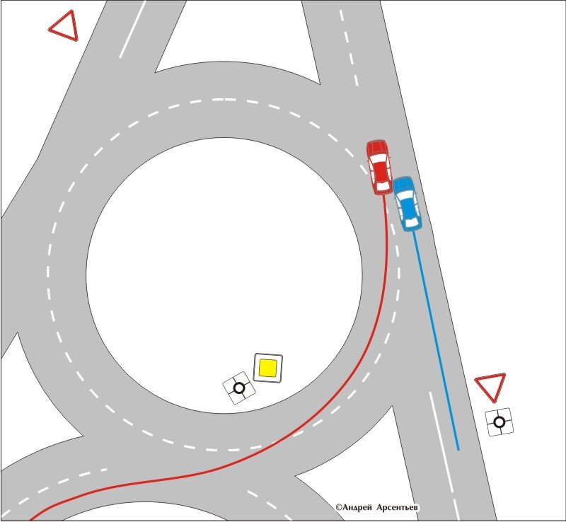 По второй полосе проехал РЯДОМ (!) с пересечением проезжих частей с "синей" дорогой. ---------------------