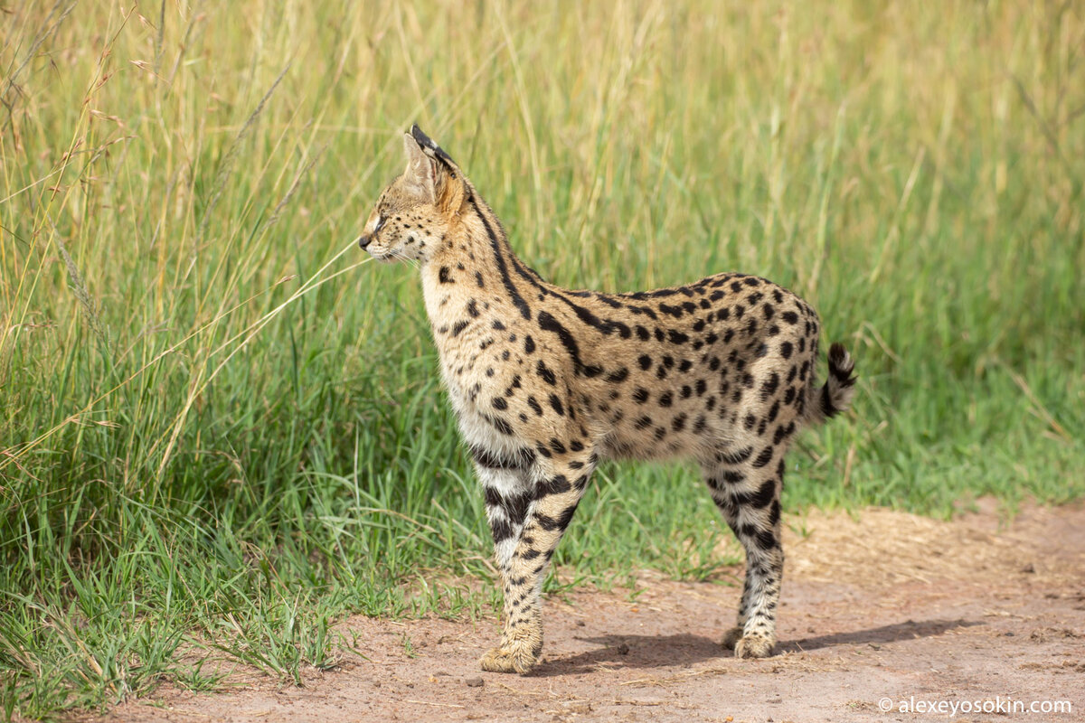 В саванне, если ты не носорог, огромный лев или участник ОПГ гиен, то все время чего-то боишься. Даже огромные слоны существа довольно пугливые. А что уж говорить про мелких зверюшек, как, например, сервал. Да, сервал хищник, но угрозу он представляет лишь маленьким птичкам, грызунам и бабочкам. А вот самого сервала постоянно гоняют более крупные кошки. Не ради еды, а просто для порядка. Ну не любят кошки друг друга. Ничего с этим не поделаешь. Так вот этот самый сервал, хоть и хищник, но жутко пугливый. Все время прячется в высокой траве. И если даже вы его встретите, то сфотографировать скорее всего не успеете. За годы съемок в Африке я видел много сервалов, но сфотографировать нормально смог трех и можно смело сказать, что это были три самых смелых сервала в саванне, ибо только эти трое не только не убегали от меня, но еще и позировали. На этих фотографиях, которые я сделал совершенно случайно, один и тот же взрослый самец. Он не особенно позировал мне, так как был занят охотой. Ник
