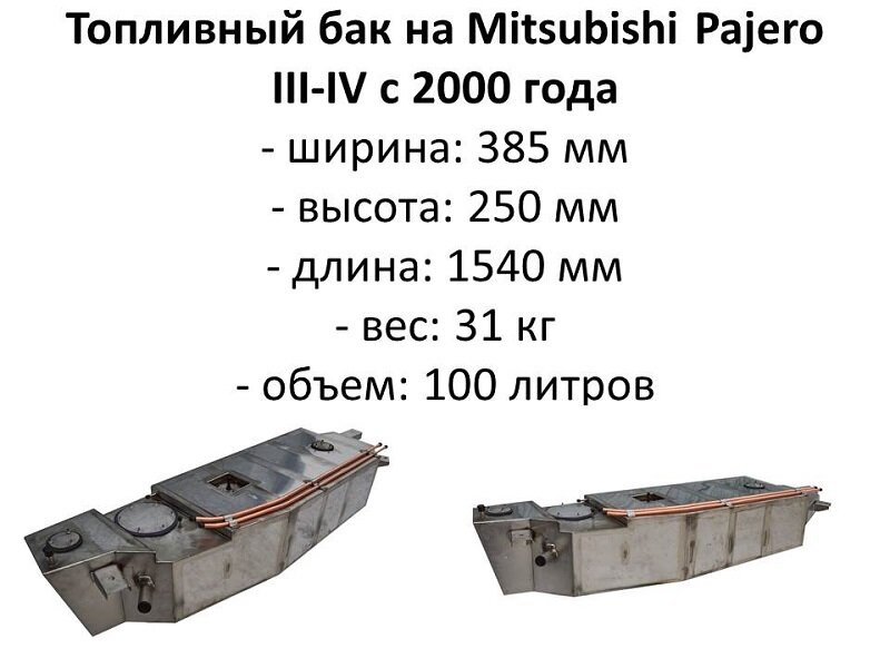 При изготовлении этого топливный бака (REV.2 Перезагрузка) для Pajero III-IV мы учли не только весь накопленный нами опыт, но и пожелания владельцев авто. Топливный бак для Pajero III-IV стал не только лучше выглядеть, но и стал подходить на все Pajero c 2000 года выпуска. Вся конструкция вырезана по нашему проекту лазером из нержавеющей стали 2 мм, но низ топливного бака для Pajero вырезан из листа толщиной 3 мм, что предотвратит пробитие бака, при ударе о камни, пни и т.п. Топливный бак для Pajero разработан таким образом, что во время сварки мы делаем только ОДИН сварной шов внутри бака: привариваем "стакан" топливозаборника к нижней части бака (но с этим швом мы справимся со следующей нарезкой) Подробно