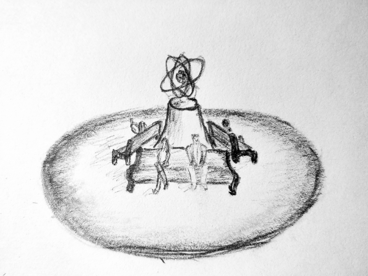 В общем чате мессенджера. Коля: Зайки, я на месте. Жду вас в парке. Катя уже со мной. Света: Я на скамейке сижу у какой-то каменной фигни. Сергей: И я на месте. Прям у памятника какой-то фиговины из Стар Трека. Где вы, алё? Катя: Ребят, мы в одном мес