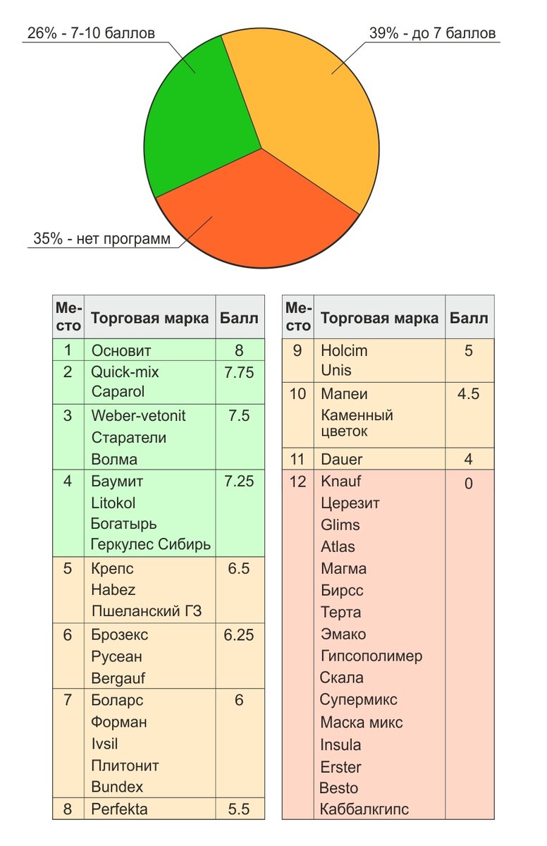 3 место разделили производители Weber, Волма и Старатели. У всех есть интересная программа - подбор «системных решений».