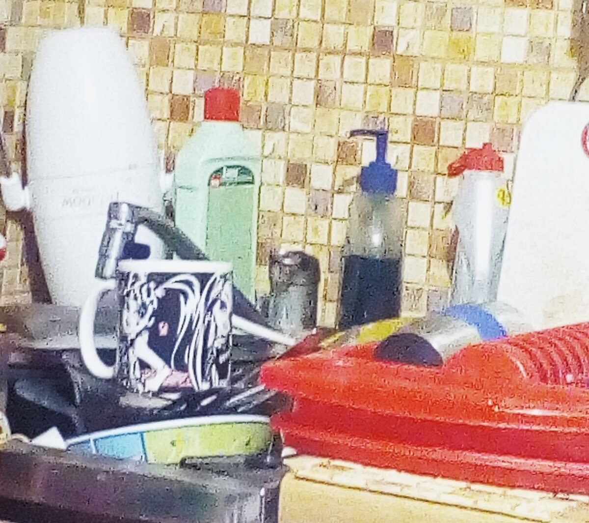 Кстати, я ж на этой неделе (не прошло и полгода) повесила на место дверцу от шкафчика. Неделю почти она мне глаза мозолила. Ещё и корзинку под шкафчик повесила, дабы сушить там кружки.