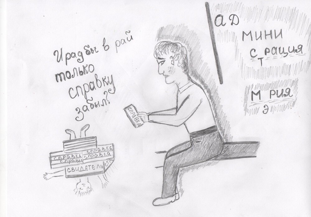 И рад бы в рай, да справку забыл Или не сказали какую, или срок истёк в старой… Мне всегда до жути неохота идти во всякие справочные организации. Казалось бы, ну что тут такого? Ну, сходи, ну, попроси, ну, выпишут, и пойдешь себе. Потеряешь полдня, неделю, две…зависит от количества бумажек, которые тебе должны выдать, точнее ты должен выпросить, иногда вытребовать, часто путем скандалов и унизительных вопросов: «А это как? А такое для чего?» Ладно, если ты живёшь в городе, да ещё и где то по соседству со справко держателями. А если тебе пилить до всяких присутственных мест на метро, трамвае, маршрутке, да хоть на тойте, по пробкам. Или со своего хутора выбираться за несколько десятков км…. А потом выяснить, что справка была нужна не такая. И вообще….ещё пару тройку нужно, чтобы тебе понять, что жить разрешили. Как жить? Ну, это уж как у тебя получится. Главное разрешили. Решили вопрос со справками. Но и это бы всё ничего, можно как тренинг по вхождению в состояние внутреннего по