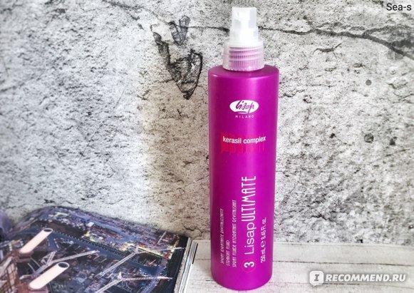 Я уже рассказывала о своей любимой кремовой термозащите Kaaral, но недавно я решила ещё попробовать и термозащиту в виде спрея, потому что иногда хочется на волосы нанести какой-то флюид или масло, а с кремовой термозащитой вместе это будет перебор. Да и средства я люблю менять, чтоб волосы не привыкали (да, у меня даже волосы ко всему привыкают, как и лицо))) Выбор пал на Lisap, т.к. много хороших отзывов, сам бренд итальянский, как и Kaaral. ❗️Тут есть момент: у Lisap есть спрей-термозащита, а есть флюид-термозащита, так вот у меня – последний. БРЕНД: Lisap Milano НАЗВАНИЕ: Флюид разглаживающий термо-защищающий для волос / 3-LISAP ULTIMATE ОБЪЁМ: 250 мл ПРОИЗВОДИТЕЛЬ: Италия Стоимость: 1200 руб Где купить? В профессиональных магазинах для волос. Я покупала в «Галерии Косметики», нашла только там в оффлайне. Кстати, почему-то не так уж и легко оказалось найти этот спрей в продаже. УПАКОВКА Длинный флакон цвета фуксии. Надписи выполнены белым цветом. На флаконе все написано на английс