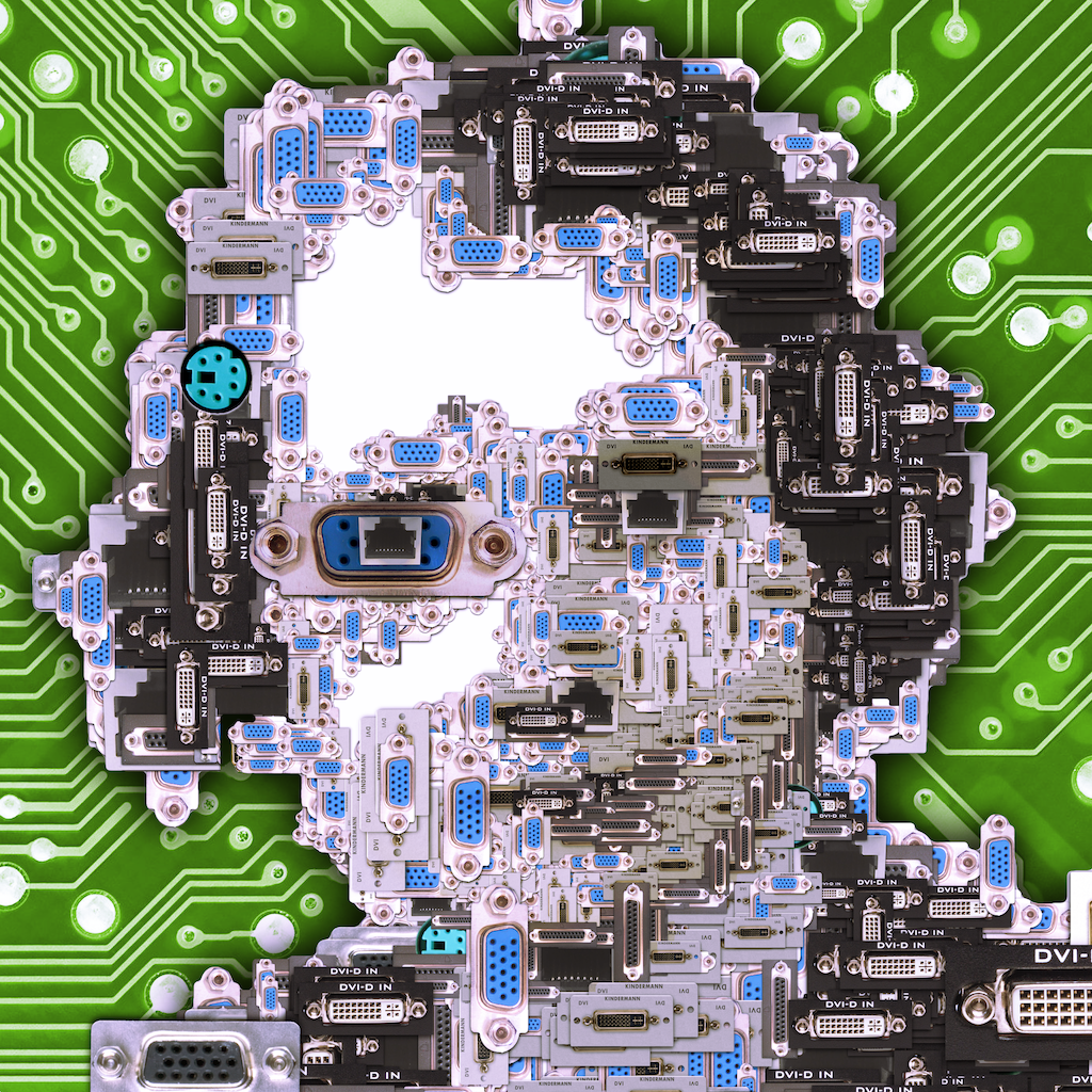 Книги с таким пугающим названием прежде можно было встретить среди программистов. Ада - язык программирования, названный в честь Ады Лавлейс - дочери знаменитого поэта Байрона. Байрон отказался от Ады, и девочка выросла без родителей, затем поступила на работу к Чарльзу Беббиджу - создателю первых компьютеров. Ада Лавлейс - автор первых алгоритмов и "мать" программирования. Электроник нарисовал коллаж Ады из компьютерных соединений типа "мама" (female connector). Издалека на картине можно увидеть портрет, а вблизи - множество деталей, составляющих иллюзию. На фоне - металлизированный текстолит, символизирующий материнскую плату компьютера.