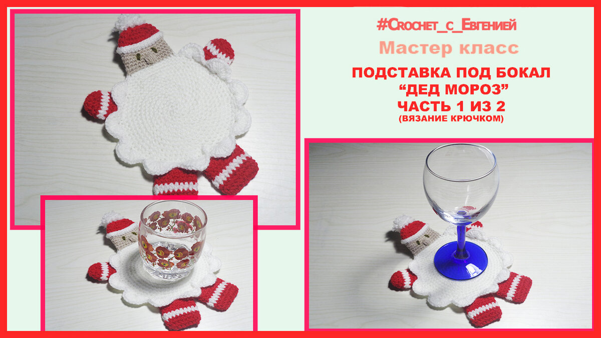 Предлагаю связать забавную подставку под бокал, в виде Деда Мороза.