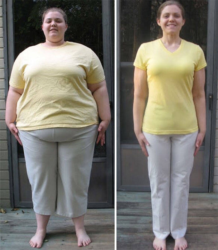 Каждая фотография иллюстрирует, как изменилось не только тело, но и самооценка. Женщины больше начинают следить за собой. Теперь им не хочется прятаться в тени, стесняясь своей полноты.