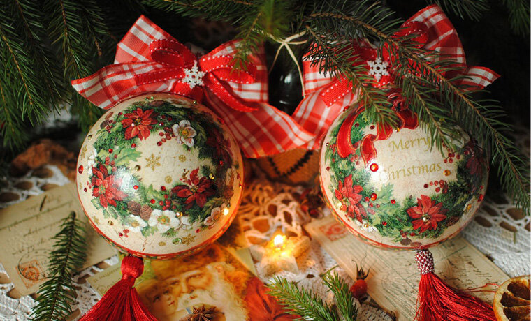 Способы декора новогодних шаров - схемы для росписи и идеи декупажа