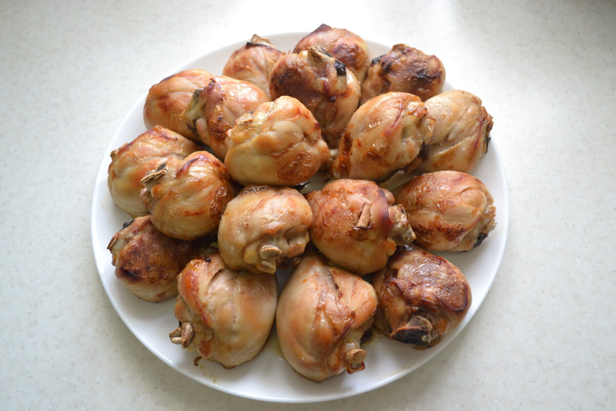 1. Моем куриные голени. Снимаем кожицу и обрубаем косточку с низу. Без кожи мясо лучше промаринуется и будет менее жирным.