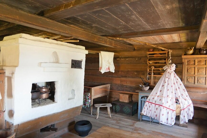 Каким вы себе представляете теплый пол? Наверное, в голове всплыли картинки с большим количеством труб и отопительным котлом. Действительно, в наше время они необходимы для утепления дома. Но я хочу вам рассказать как, возможно, делали теплый пол в старину. Как и в наше время тогда многое зависело от достатка семьи. Например, в богатых каменных дворянских домах в полу делали специальные проходы. По ним-то и протекал горячий воздух. Но все же подавляющее большинство населения состояло из простых крестьян, живущих в деревянных избушках. Им тоже хотелось тепла и вот как они, возможно, делали теплый пол. Внутри дома, еще до застилки пола, вдоль стен на расстоянии одного метра ставили плетеный заборчик. Его высота была небольшой - около 60 см. Промежуток между фундаментом (завалинкой) и плетенкой засыпали землей. Само же внутреннее ограждение мазали глиной. Но как тепло попадало под пол? Для этого в месте где находилась печка заборчик убирали. В результате все пространство под полом заполня