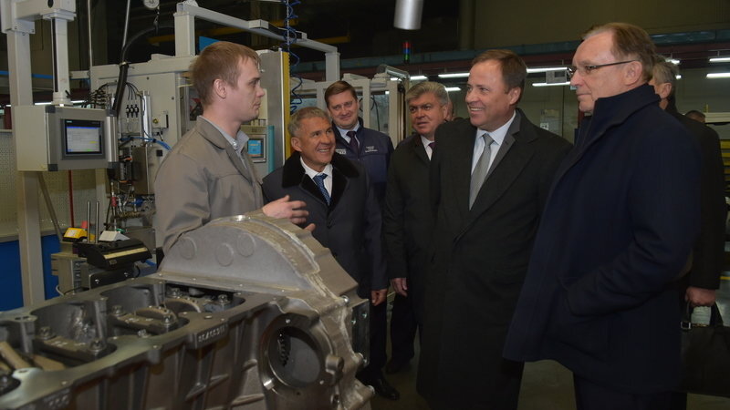 Напомним, в Набережные Челны сегодня, вместе с Рустамом Миннихановым, прибыл Полномочный представитель Президента России в Поволжье Игорь Комаров. Насыщенная программа важных гостей включала в себя посещение крупных заводов, в том числе автогиганта и гордости нашего города, - «КамАЗа». Игорь Комаров впервые побывал в Челнах и смог объективно оценить новейшие разработки местных специалистов. Он ознакомился с выпуском двигателей, кабин, сборкой готовых грузовиков. Во время посещения завода двигателей гостям продемонстрировали, как ведется подготовка к серийному выпуску новых рядных двигателей семейства Р6. А также показали линии сборки силовых агрегатов и уже готовые детали. Напомним, что договор на разработку нового семейства рядных шестицилиндровых двигателей мощностью от 400 до 700 лошадиных сил экологического класса «Евро-5» был подписан между ПАО «КАМАЗ» и группой компаний Liebherr в марте 2014 года в Германии. Приказом генерального директора Сергея Когогина на «КАМАЗе» был откр