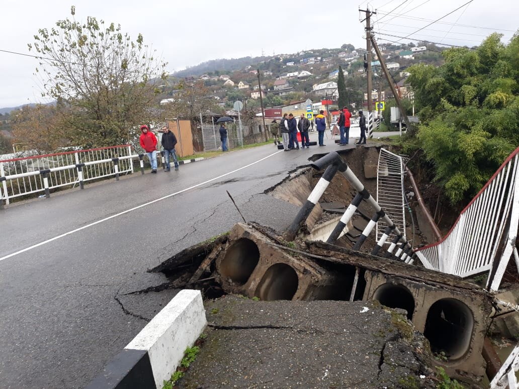 В Сочи в районе села Нижняя Шиловка обвалилась часть моста