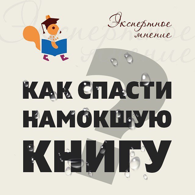 Один из самых частых видов повреждения книг — это повреждение водой. Книги могут намокать полностью или частично. Излишняя влага в книгах быстро приводит к развитию плесени, переплёты отклеиваются, образуются затёки на бумаге, а при неправильной сушке книга деформируется. Поэтому сушку следует проводить так, чтобы по возможности предотвратить коробление и поражение книг плесенью, а в тех случаях, когда издание напечатано на мелованной бумаге — предотвратить слипание листов. Сушка мокрых книг — длительный, трудоемкий процесс, и в особо тяжелых случаях целесообразнее отдать книгу в профессиональную мастерскую, где книгу разберут и просушат. Разбирать мокрый блок самостоятельно опасно: можно повредить бумагу. При сушке в домашних условиях прокладывают каждый намокший лист фильтровальной бумагой. Книга должна находиться в открытом состоянии, переплётные крышки необходимо отделить от книжного блока листами фильтровальной бумаги. Листы переворачивают по мере высыхания. Переплет высыхает ме