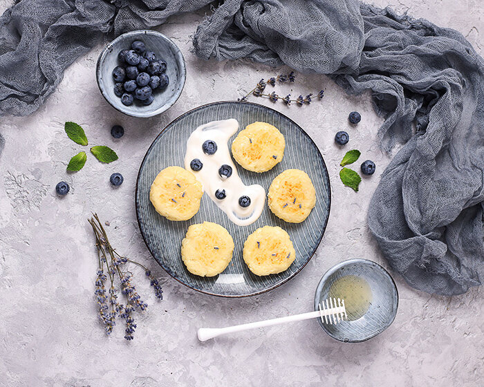 Любите сырники, но на диете себя не побалуешь? А вот и побалуешь! Если приготовить сырники правильно из правильных продуктов. Диетические сырники готовятся из нежирного творога. Чтобы они содержали меньше калорий, их готовят не на масле в сковороде, а пекут в духовке. Вместо сахара в них используется заменитель. Вместо сараха в этом рецепте использовать стевию — растение, содержащее природный заменитель сахара. Если её не нашлось, можно использовать подсластители в таблетках, сироп агавы, кленовый сироп, тутовый дошаб. Если и этого нет, полейте сырники небольшим количеством мёда. В крайнем случае возьмите три чайные ложки сахара. На 6 порций вам понадобится