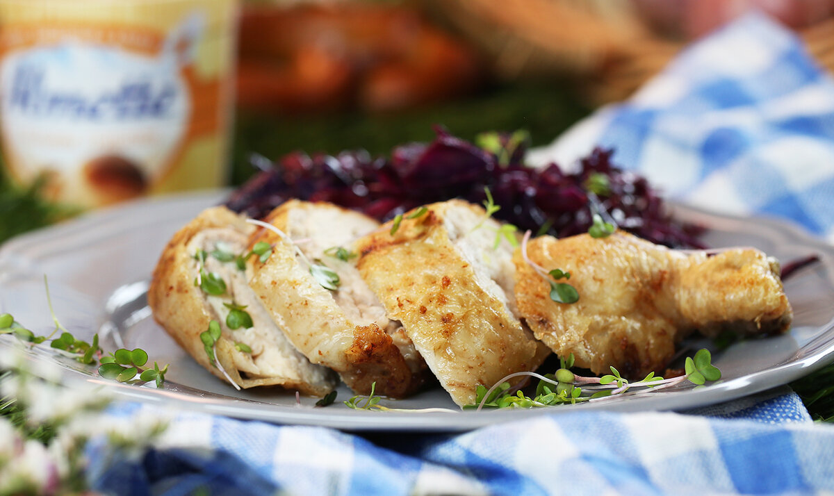 Всем привет я публикую на своем канале самые разнообразные кулинарные рецепты которые придумал и испробовал, готовьте правильно и вкусно. Давайте приготовим фаршированные куриные ножки с грибами. Нам понадобится: восемьсот грамм куриных ножек, триста грамм шампиньонов, одна луковица, перец черный молотый, растительное масло, соль. Для соуса нам понадобится: сто грамм шампиньонов, двести миллилитров сливок, два зубчика чеснока, зелень. Сначала приготовим ножки, вымыв их, обсушив полотенцем лишнюю влагу. Теперь стягиваем с ножек кожу, собирая ее в складки у хрящика. Отрезаем кость вместе с мясом, оставляя кусочек кости с кожей. Мясо снимаем с кости и нарезаем на кусочки.